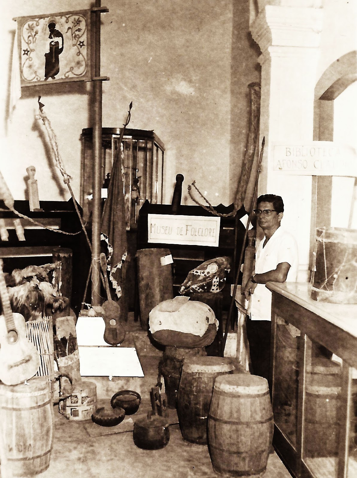 | Hermógenes Lima Fonseca no Museu Capixaba de Folclore, em Vitória, ES. Fotógrafo não identificado. Anos 1950. |