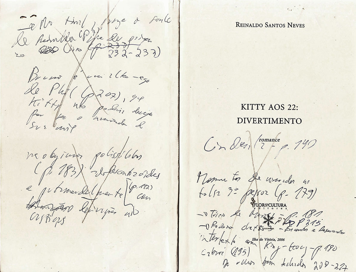 Kitty dormiu por mais de uma década: este ensaio foi escrito entre 2006 e 2017, em marginália, nas páginas do próprio livro, ou em pedaços de papel avulsos, com garranchos incompreensíveis em que eu insistia em ver ideogramas autoexpressivos, não um texto com início, meio e fim. Em homenagem aos 70 anos de Reinaldo, concluí o caso. Tirem suas conclusões por si mesmos, pois nem sempre o mordomo é o culpado, mesmo sendo anglo-capixaba seu senso de humor.