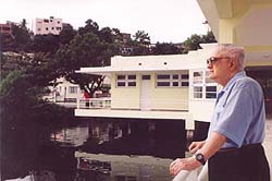 | Nelson de Albuquerque Silva no cais do avião, em Santo Antônio, Vitória, ES. Foto Álvaro Silva. 2002. |