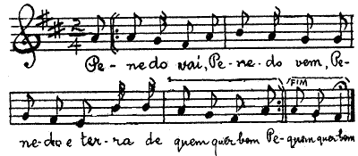 | Penedo vai, Penedo vem, Penedo é terra De quem quer bem Venha cá fulana, Venha cá, meu bem, Se tu és de tua mãe És minha também. |