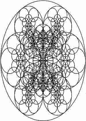 A elipse é imperfeitamente perfeita, ou perfeita em suas imperfeições. O ovalquímico é uma representação bidimensional antiga mas não ultrapassada do cosmo. Aqueles que tentaram fazê-lo em três dimensões, tal qual um ovo, enlouqueceram. A quarta dimensão do ovo desdobra-se por todo universo. Mais perfeito que o hipercubo desdobrado ou tesseract de Hinton é o hiperovo. O ovo é dadá, o ovo agride àqueles que o rodeiam e se dão ao sacrifício de decifrá-lo. O mínimo possível a ser feito é estender seus domínios bidimensionais aos ovos que o circundam — elipses infinitas que formam uma mandala.