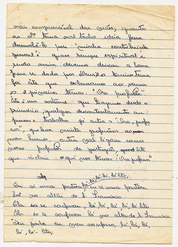 Uma pergunta se impõe aqui: como conseguiu o professor a consentida autonomia para o trabalho de pesquisador do folclore dentro de um colégio de cânones conservadores, estritamente controlados pelas irmãs vicentinas?