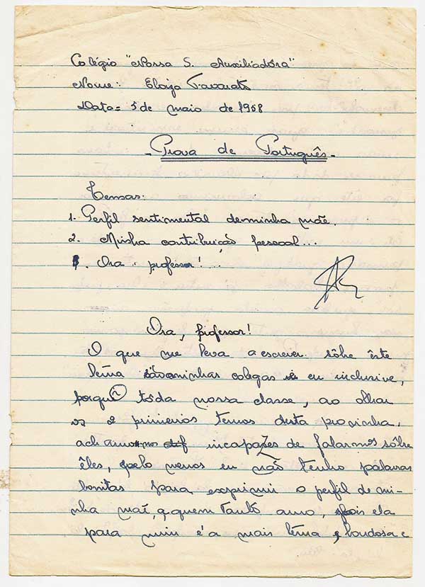 O primeiro ano – 1943 – é o mais recuado que aparece nos “documentos” do acervo; o último ano de ocorrência dos registros é 1959. São, porém, parâmetros cronológicos relativos, visto que uma grande parte dos documentos não contém datas, tão somente o nome e a assinatura das alunas que os redigiram.