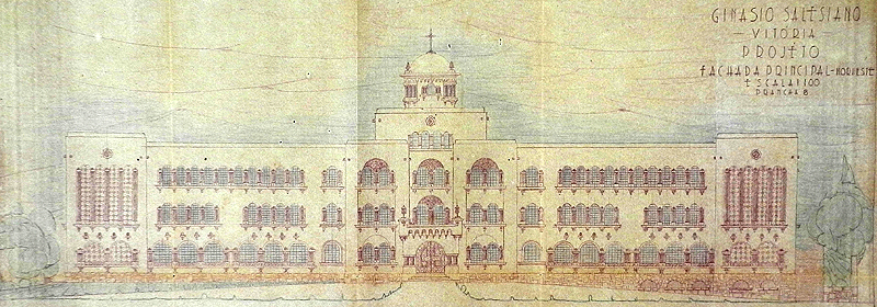 | ID 382 – Projeto do Ginásio Salesiano, Vitória, à avenida Vitória, Forte de São João, 1945. |