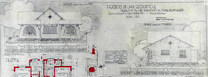 | ID 539 – Projeto de uma residência à rua Luciano das Neves, Vila Velha, proprietário, Ewerton da Silva Guimarães, fevereiro de 1938. |