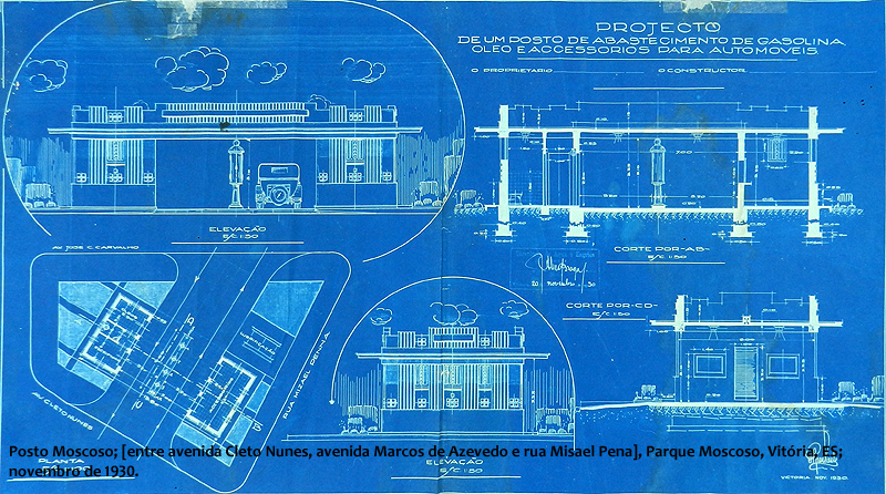 ![ID 268 - Projeto de um posto de abastecimento de gasolina, óleo e acessórios para automóveis – Posto Moscoso [entre avenida Cleto Nunes, avenida Marcos de Azevedo e rua Misael Pena], Parque Moscoso, Vitória, ES, novembro de 1930 e fevereiro de 1931. ID 268 - Projeto de um posto de abastecimento de gasolina, óleo e acessórios para automóveis – Posto Moscoso [entre avenida Cleto Nunes, avenida Marcos de Azevedo e rua Misael Pena], Parque Moscoso, Vitória, ES, novembro de 1930 e fevereiro de 1931.](https://estacaocapixaba.com.br/wp-content/uploads/2016/01/268_a.jpg)